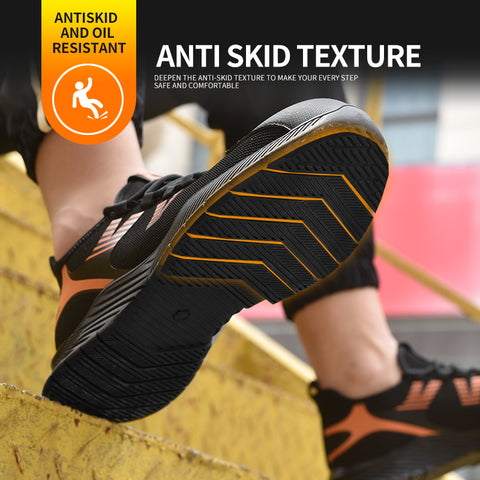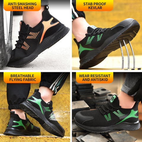 - Excelente material: Los zapatos de trabajo están fabricados con materiales de primera calidad, acabados con puntera de acero y entresuela de acero, tejido transpirable y ligero en el empeine para garantizar menos peso y transpirabilidad.